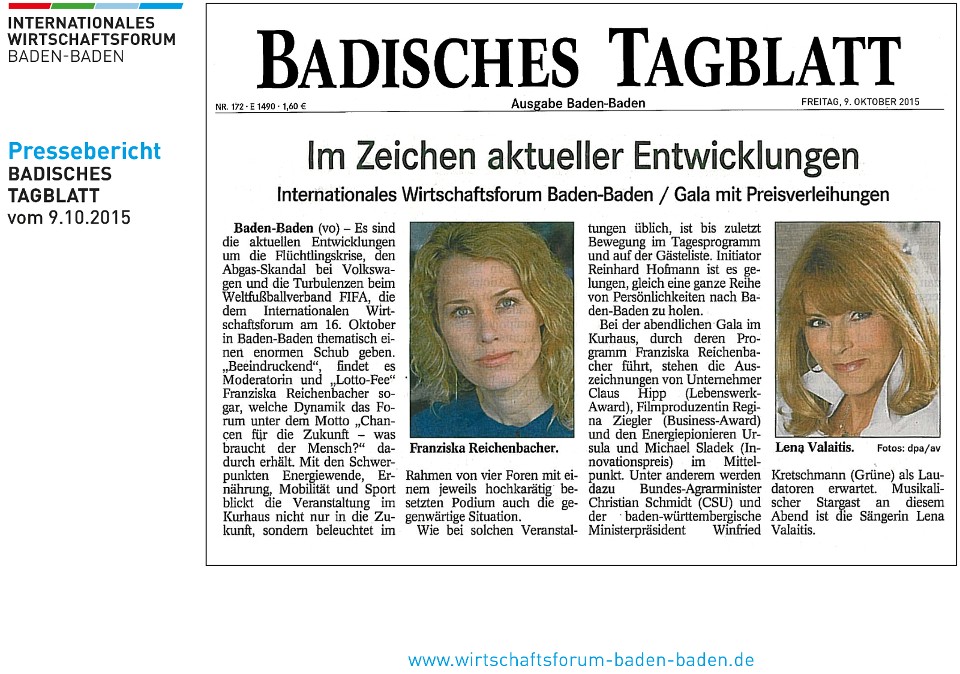 Internationales Wirtschaftsforum Baden-Baden / Gala mit Preisverleihungen