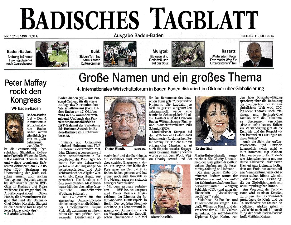 4. Internationales Wirtschaftsforum in Baden-Baden diskutiert im Oktober über Globalisierung