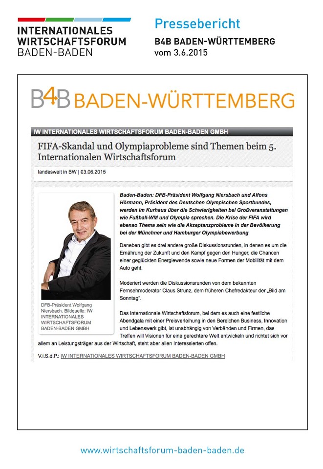B4B Baden-Württemberg - Fifa-Skandal und Olympiaprobleme sind Themen beim 5. Internationalen Wirtschaftsforum