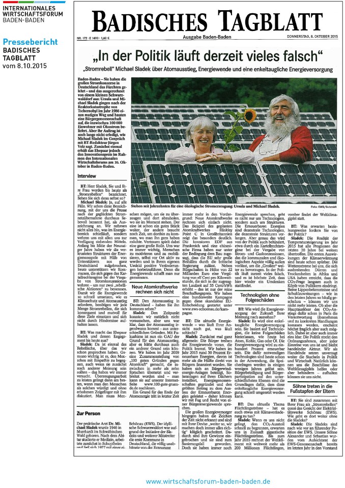 "Stromrebell" Michael Sladek über Atomausstieg, Energiewende und eine enkeltaugliche Energieversorgung