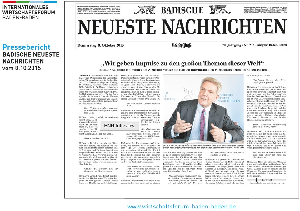 Initiator Reinhard Hofmann über Ziele und Motive des fünften Internationalen Wirtschaftsforums in Baden-Baden.